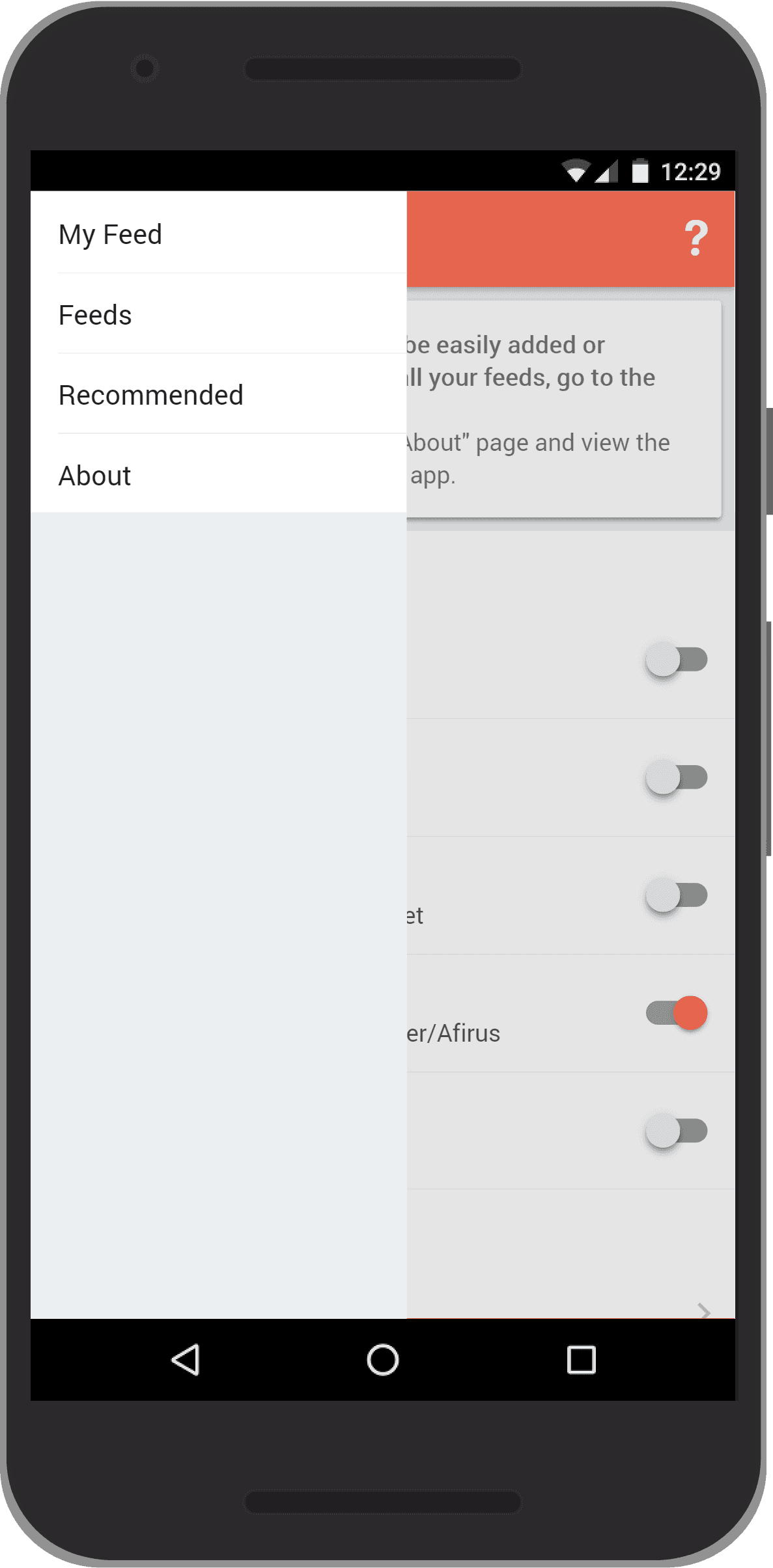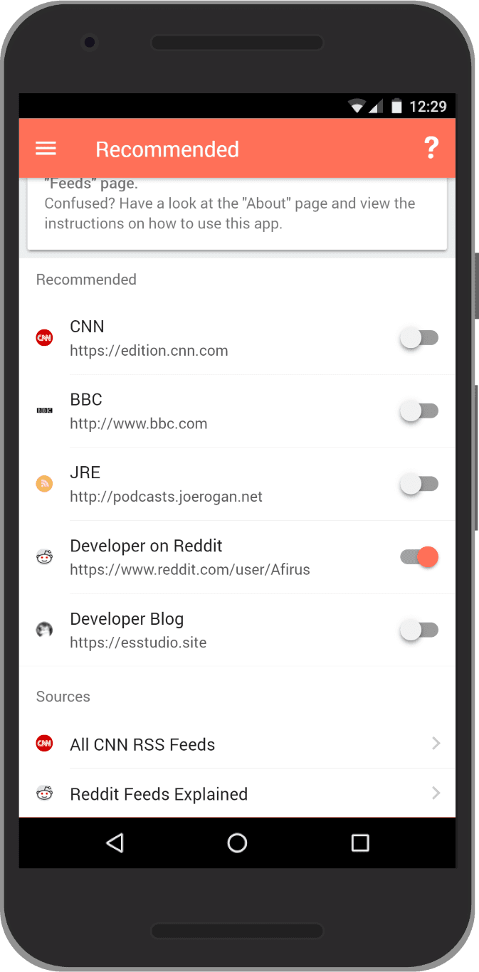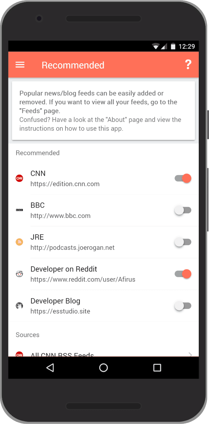 When you first open the app, you will see the recommendations page. This page allows you to easily add and remove popular feeds.