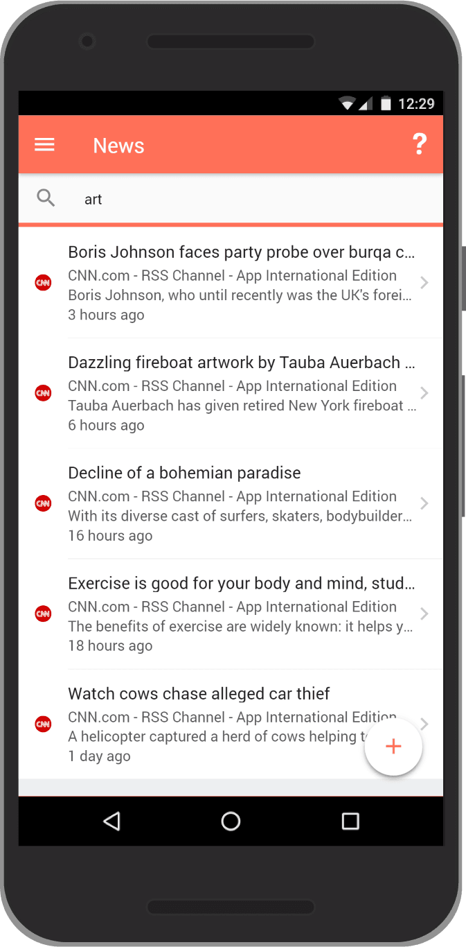 You can also use the search field to filter posts. It will search the name of the feed, for example CNN.com, to only show posts from CNN.com. It will also search in the posts title, description and content.